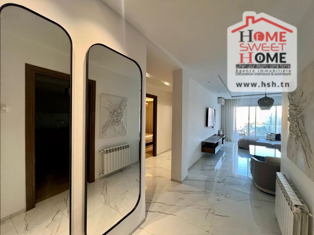 Un appart de très haut standing au 4ème étage situé à Cité les palmeraies, L'Aouina. A l'entrée, on a un salon avec balcon, une cuisine équipée, une suite parentale avec balcon, une chambre à coucher et une salle de bain. Pour tous les renseignements, Contacter L'agent sur le 58780890.