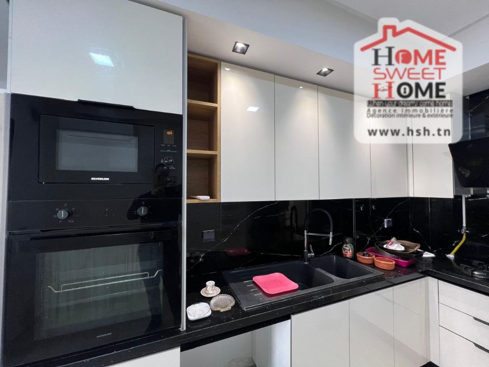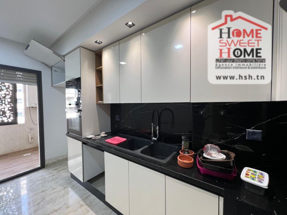 Un appart de haut standing au 1er étage avec ascenseur situé dans une résidence R4 avec piscine à Ain Zaghouan Nord . A l'entrée, On a un salon avec balcon, une cuisine équipée avec séchoir, une suite parentale, une chambre à coucher et une salle de bain. Pour plus de renseignements, contacter l’agent sur le 58780890.