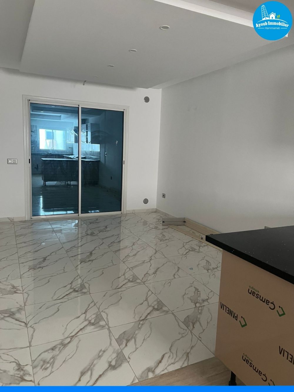Bel appartement jamais habité à louer à l'année à Hammamet, en face Hotel Ribat. Il se compose de 3 chambres chauffées et climatisées dont une suite, 2 salles de bains, une cuisine équipée, un coin repas et un grand salon. Prix 1.900dt par mois.