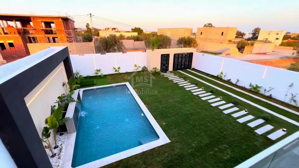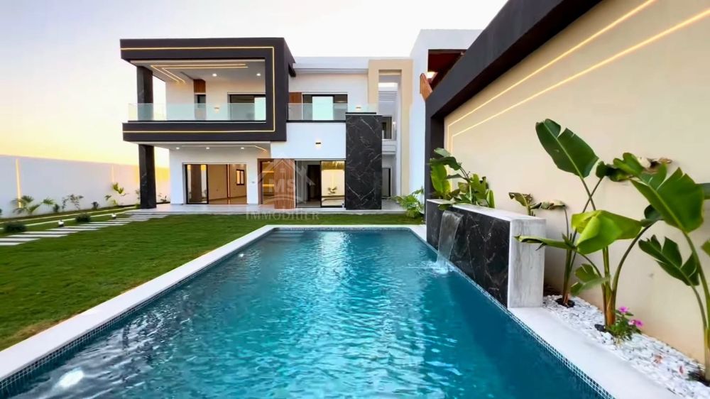 🏢#MS_IMMOBILIER🏢met en #vente👋cette #Villa toute #neuve💯 de #Haut_Standing de style S+5🤩dotée d’une #piscine 🏊d’un beau #Jardin arboré et gazonné 🌳et d’un #jardindhiver ainsi une #place-parking pour plusieurs voitures🚘à #Hammamet_Sud 🏝⛱️