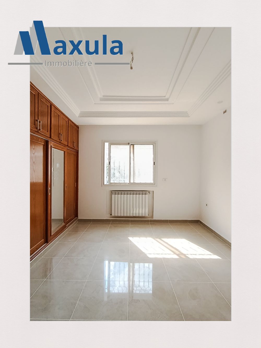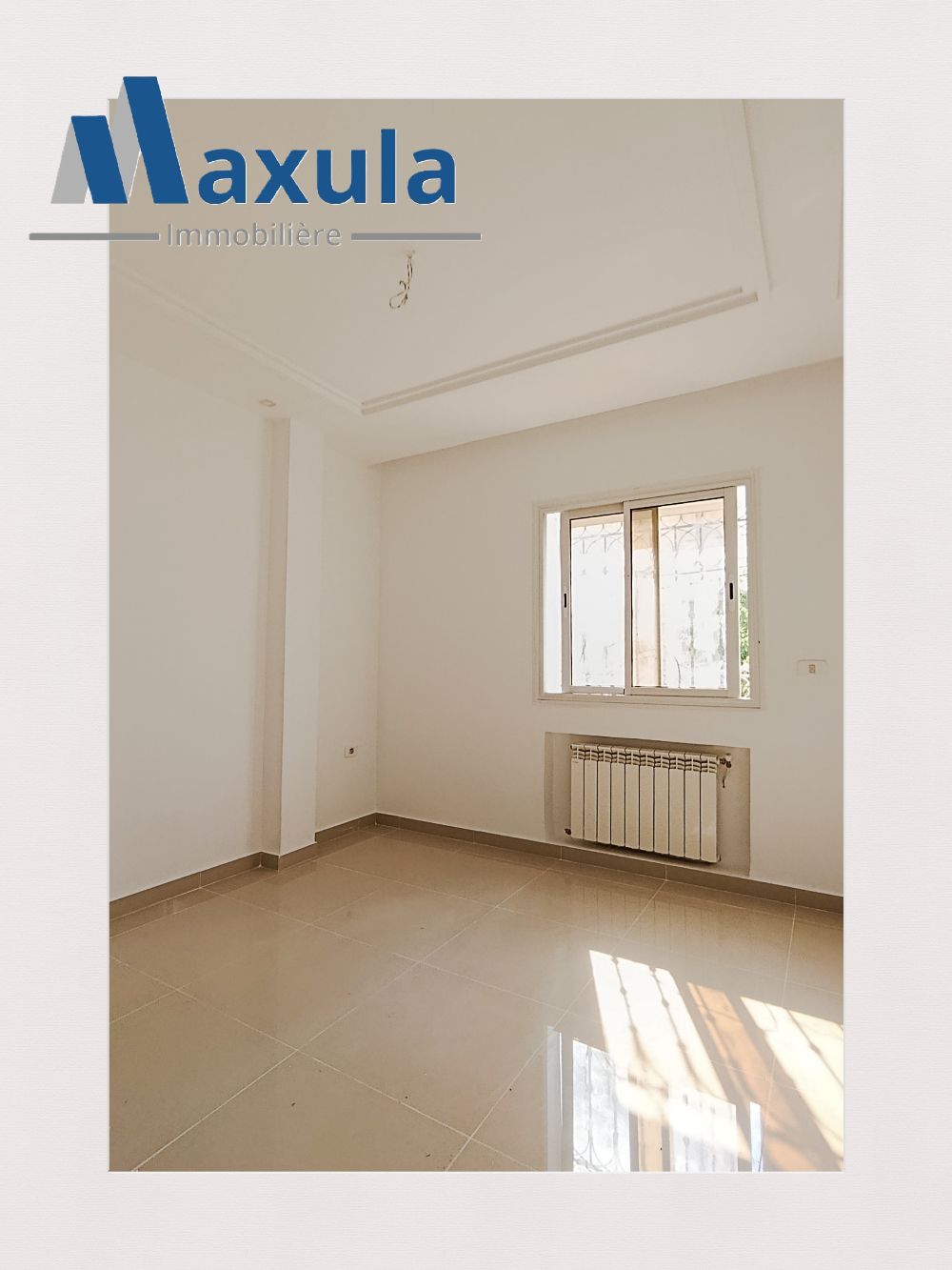 🔹MAXULA IMMOBILIERE vous propose à la LOCATION un APPARTEMENT S+3 d’environ 75m² se trouvant au PREMIER ÉTAGE d’un immeuble familial idéalement situé à RADES MELIANE 2 à proximité immédiate de la gare de train et des commodités.