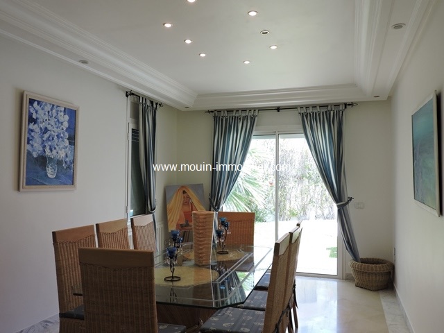 La villa compte un spacieux salon s’ouvrant sur un jardin gazonné et bien entretenu et une belle piscine, une salle de séjour, une salle amanger, une cuisine bien équipée, deux suites richement meublés aménagées de dressing et salle de bains, deux chambres à coucher et une salle de bain.