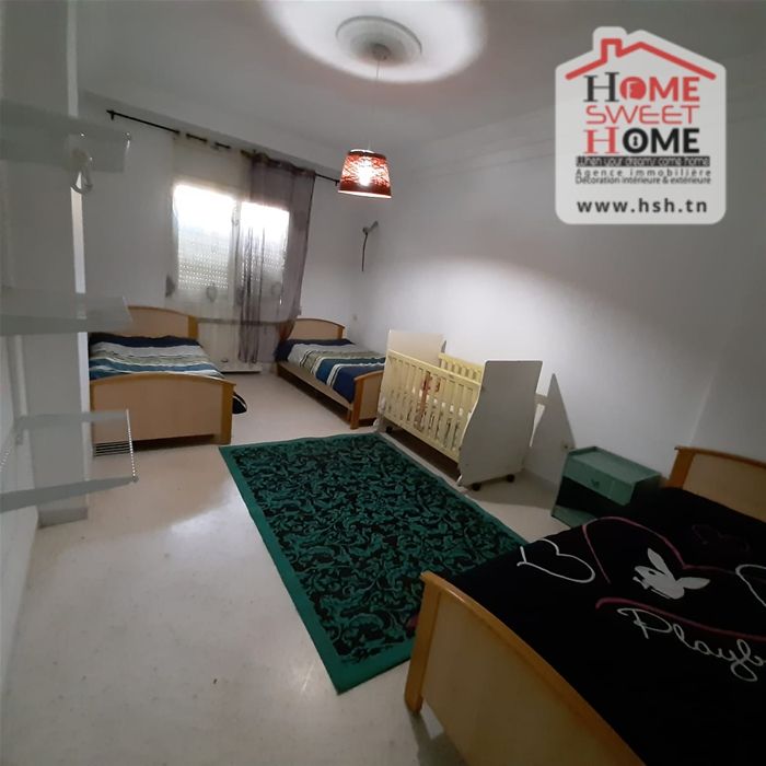 Un appartement S2 d'une superficie de 120m2 situé au RDC dans une résidence à Ain Zaghouan Nord. A l'entrée, on a un salon avec balcon ,cuisine , 2 chambres et salle de bain. . Contacter l’agent sur le 56 790 780