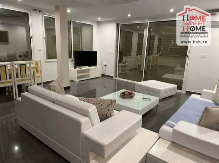 Appart S2 d'une superficie de 200m² situé au 4ème étage d'une résidence à El Kharrouba Hammamet. A l'entrée on trouve un salon, une cuisine, 2 chambres, 2 salles de bain et 2 terrasses. Contacter l'agent: 56 590 380