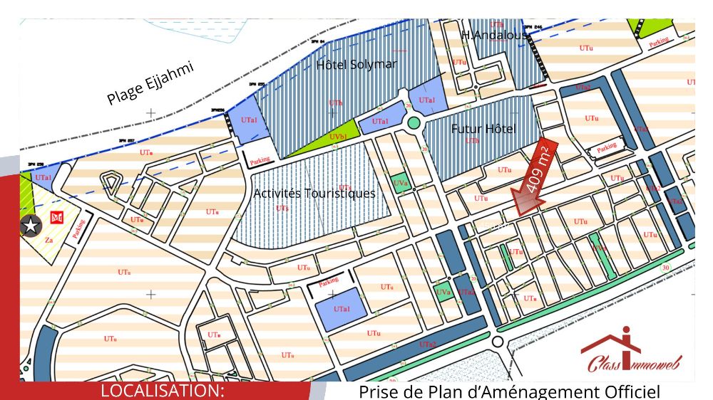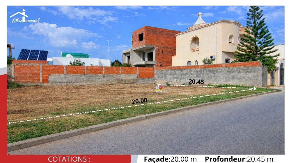 Nous vous proposons un terrain résidentiel d’exception de 409 m², idéalement situé au cœur de la Cité Andalous, l’un des quartiers les plus prisés de Borj Cédria – Soliman Plage.
