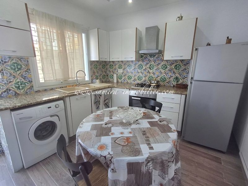 A louer à l’année un RDC de villa situé à la zone touristique Hammamet Nord à deux pas de la plage.