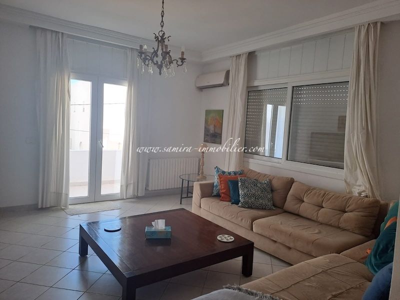 A louer à l’année un appartement meublé de type S+2 situé à Hammamet dans un quartier calme et accessible.