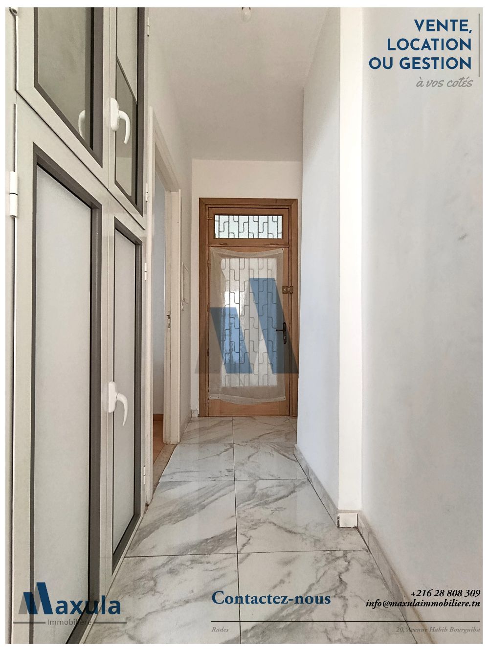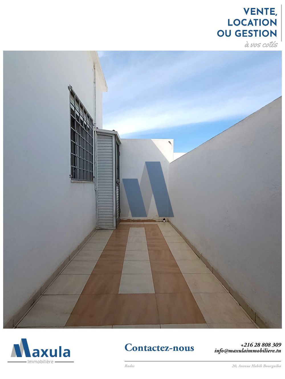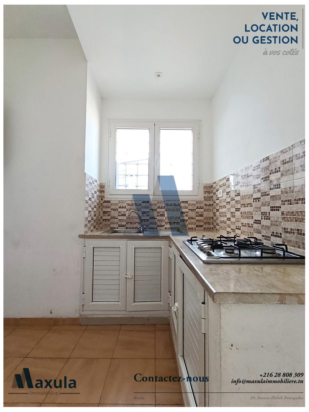 🔹MAXULA IMMOBILIERE vous propose à la LOCATION un coquet APPARTEMENT S+1 d’environ 45m², situé au 2ème étage sans ascenseurs au sein d’une RÉSIDENCE FAMILIALE calme et sécurisée, idéalement implantée dans un quartier résidentiel à RADES MELIANE 1, à seulement 1 à 2 minutes à pieds de LA GARE DE TRAIN.