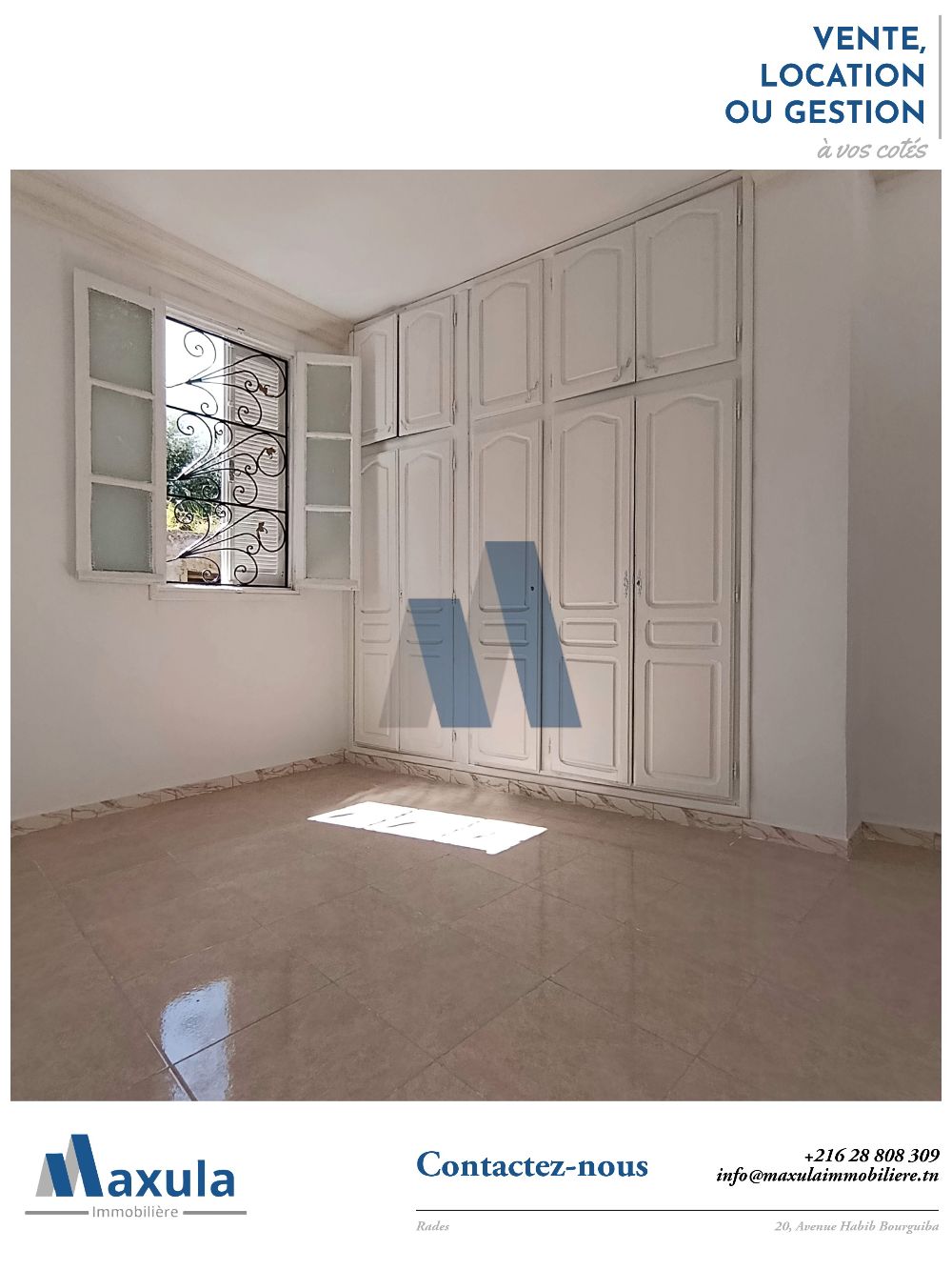 🔹MAXULA IMMOBILIERE vous propose à la LOCATION un APPARTEMENT S+1 d’environ 40m² idéalement situé au PREMIER ÉTAGE d’une résidence familiale à RADES MRAH dans un quartier calme et proche des commodités.